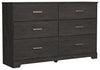 With its clean-lined look and modern attitude, this dresser is a fresh style awakening. Warm hue over replicated oak grain easily complements other furniture finishes. Smooth drawer fronts with antiqued pewter-tone handles complete the aesthetic.