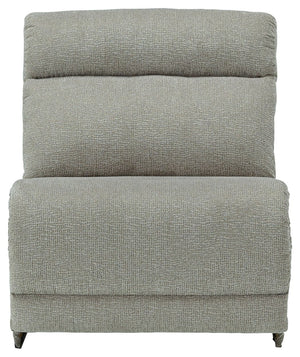This armless chair is made with polyester upholstery. Pairs with other items in the series to make a sectional.