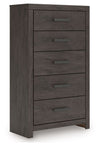Designed with everyday style in mind, this chest of drawers is a simply chic approach to modern living. A dark charcoal finish blends black and brown undertones, creating a versatile look that effortlessly pairs with your existing pieces. And for must-have function, five smooth-gliding drawers store clothes and linens in charming fashion.