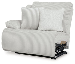 This left-arm facing power recliner is made with polyester upholstery. Pairs with other items in the series to make a sectional.