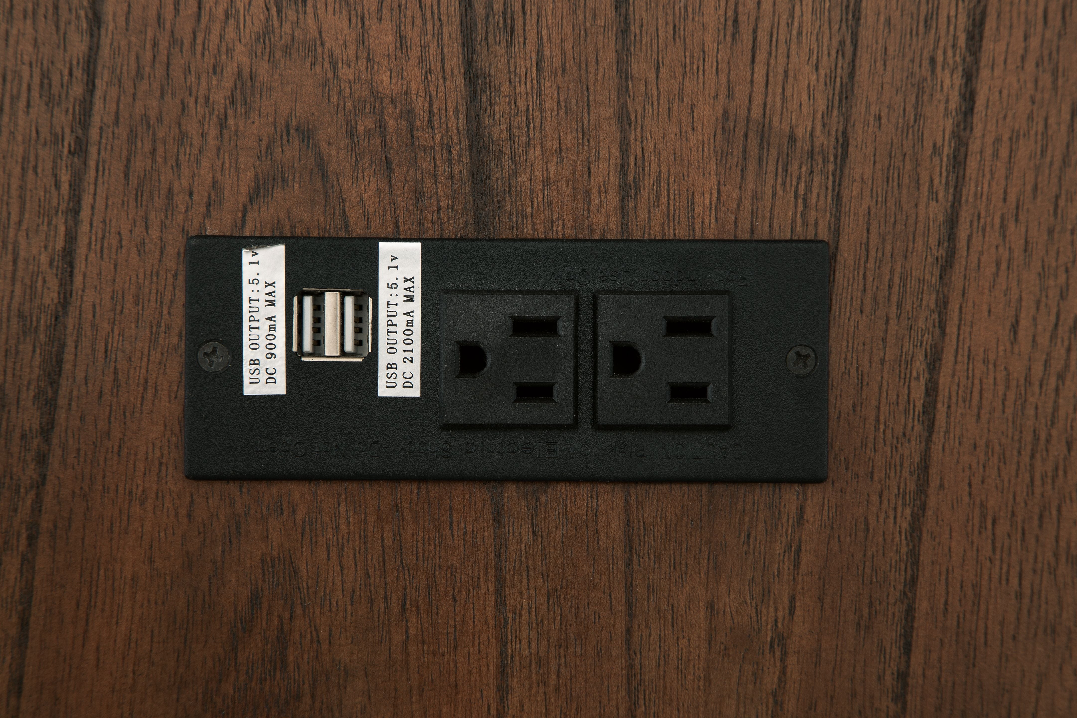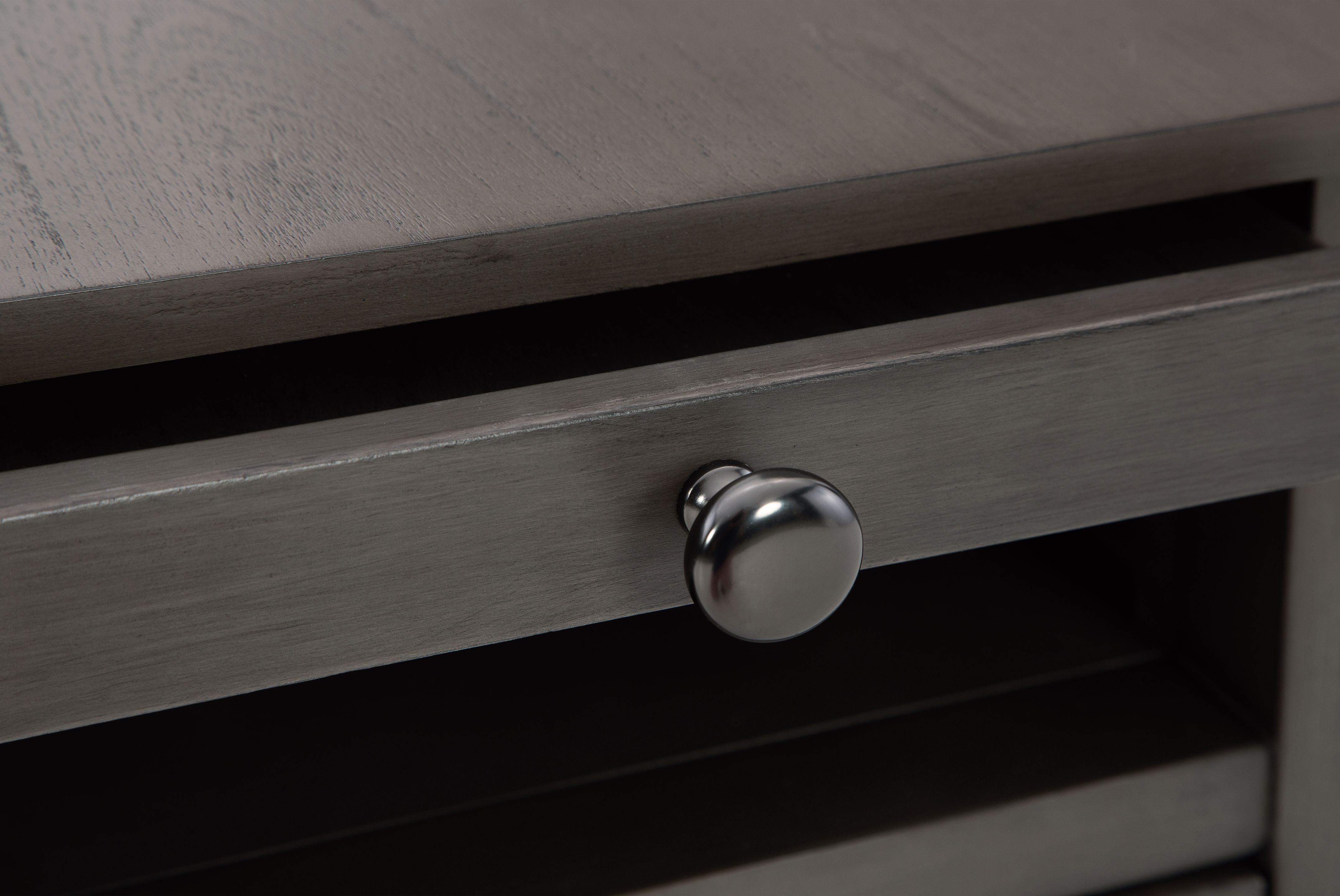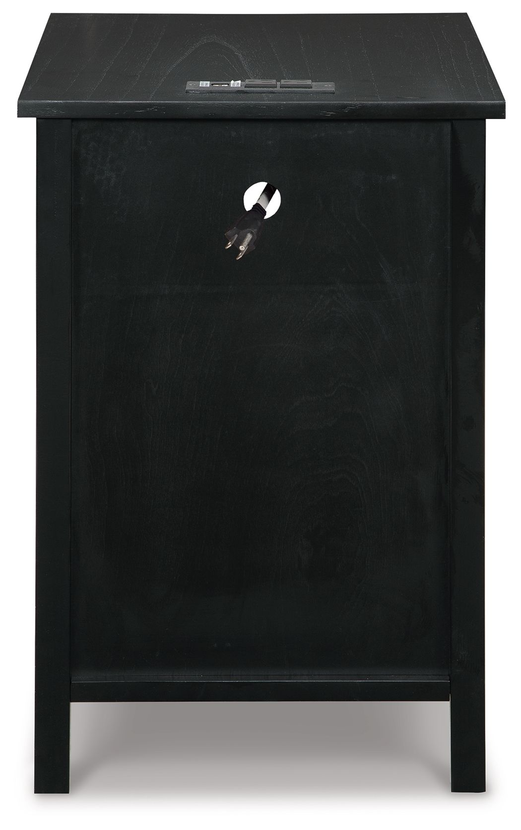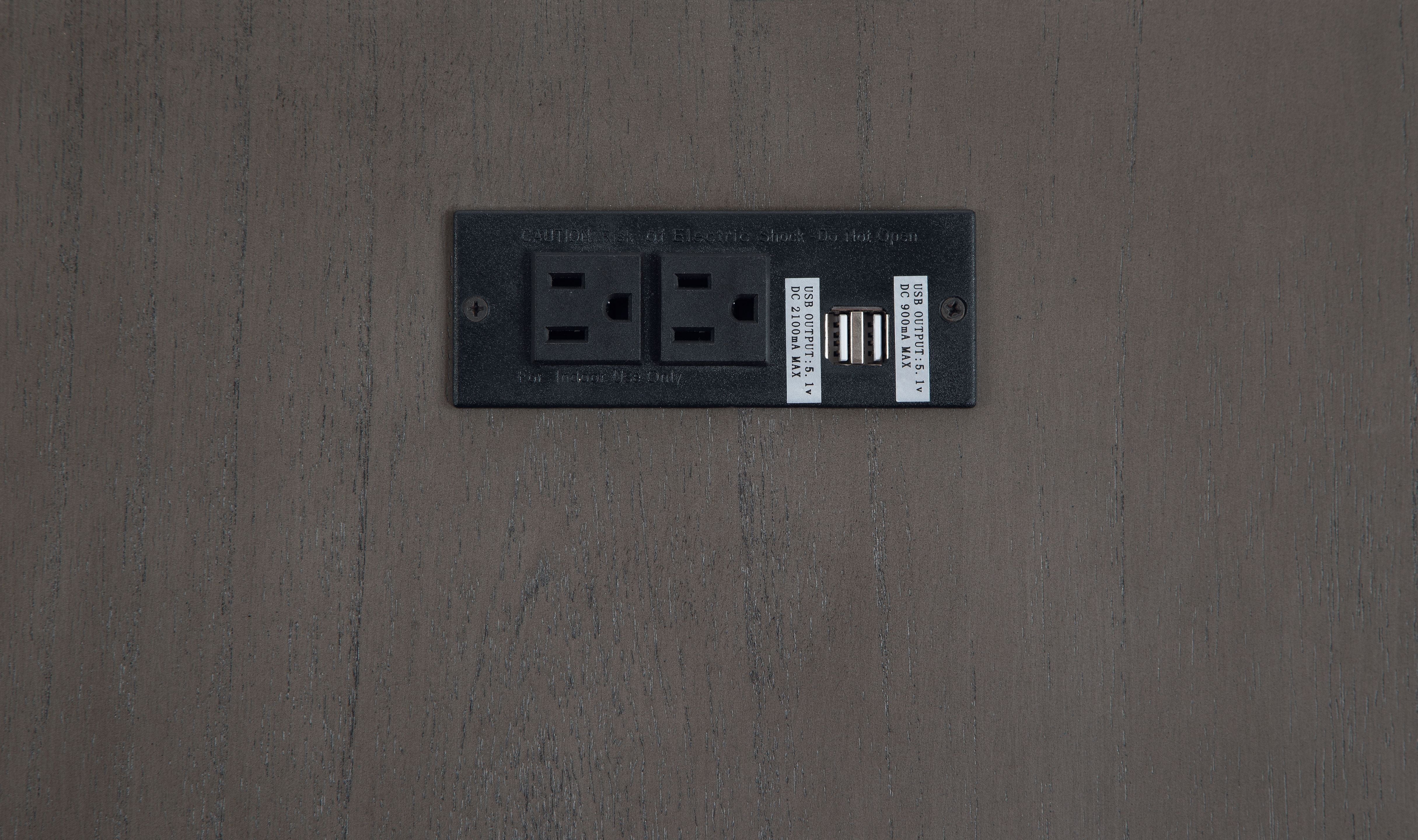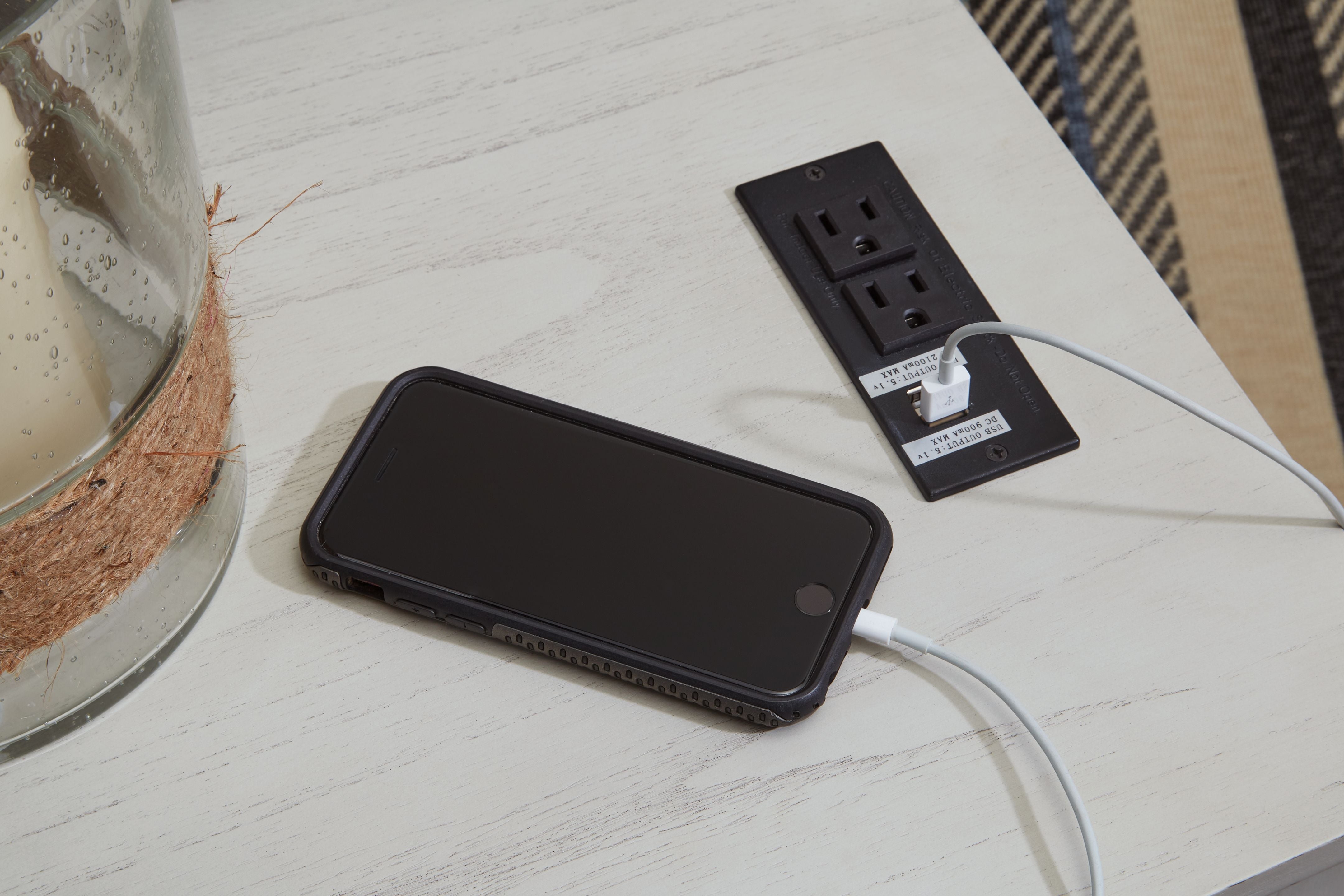 Add big character to a small space with this chairside end table. With its compact size and strong silhouette, it can go anywhere and blend easily into the decor. Less is so much more with the Shaker-inspired design and whitewashed wood grain finish. Loaded with form and function, this end table displays accent pieces and stores essentials securely while keeping devices powered up.
