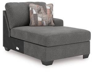 This right-arm facing corner chaise is made with polyester upholstery. Pairs with other items in the series to make a sectional.