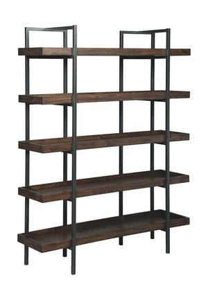 If youre a fan of urban industrial design, its easy to see why this bookcase is a bestseller. The blackened gunmetal frame is sleek, sculptural and ultra modern. Beautified with an oiled walnut-tone finish, five gallery shelves stack up to great form and function.