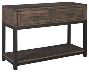 Combining a two-tone finish with a gently distressed texture produces one very distinctive sofa table. Whether your style is modern farmhouse or urban industrial, the Johurst sofa table is the perfect accent for your rustic retreat.
