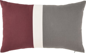 This simple accent pillow does the trick for added comfort and style. Color block aesthetic is fashion-forward, showcasing white, gray and brick red. Paired with your favorite seat, its a win-win situation.