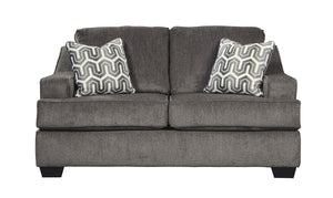 • ["Corner-blocked frame","Attached back and loose seat cushions","High-resiliency foam cushions wrapped in thick poly fiber","2 toss pillows included","Pillows with soft polyfill","Polyester upholstery and pillows","Exposed feet with faux wood finish"]