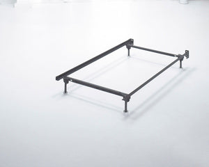 - ["Assembly required","Made of metal","Protective floor glides","Pre-drilled to bolt onto most headboards","Compatible with twin or full mattress and box spring","Uses 1\/4\u0022 bolts; not included"]