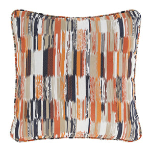 Why should high style mean high maintenance? Lighten up with this multi-hued indoor-outdoor pillow. Its wrapped in high-performance Nuvella® fabric thats stain resistant and a breeze to clean. Abstract pattern of navy, red, orange, tan and cream tantalizes with a kaleidoscope of color.