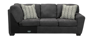 With the contemporary look of the slate toned upholstery surrounding the full rounded arms and plush seat and back cushions, the œSorenton-Slate� upholstery collection perfectly captures comfort with a modern flair. With the ample seating of this sectional, everyone is guaranteed to have the best seat in the house.