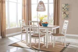 - ["Includes dining table and 4 chairs","Made of wood and engineered wood","Two-tone finish"]