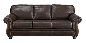 Relax. This sofa is luxury made affordable. Sumptuous top-grain leather wraps the interior seating area, including armrests, while skillfully matched faux leather upholstery on the exterior saves you a pretty penny. Nailhead trim and rolled, padded arms are distinctive refinements to a classic profile.