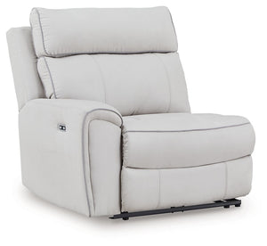 This left-arm facing power recliner is made with polyester upholstery. It pairs with other items in the series to make a modular sectional.