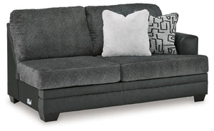 This right-arm facing sofa is made with polyester and faux leather upholstery. Pairs with other items in the series to make a sectional.