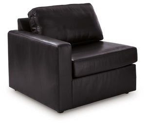 This left-arm facing corner chair is made with a combination of 100% top grain leather and faux leather upholstery. Fully finished on all sides, it pairs with other items in the series to make a modular sectional.