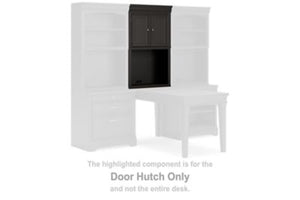 This door hutch is made with solid wood frames, elm veneer and MDF substrate. Pairs with other items in the series to make a home office kit.