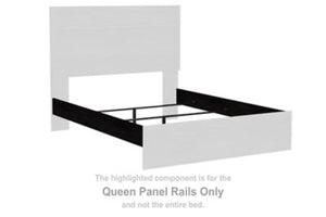 This set of queen panel rails is made with engineered wood (MDF/particleboard/plywood) and decorative laminate. Pairs with other items in the series to make a bed kit.