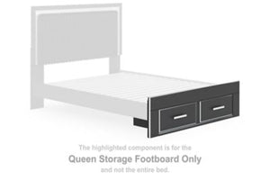 This queen storage footboard is made with engineered wood (MDF/particleboard/plywood) and decorative laminate. Pairs with other items in the series to make a bed kit.