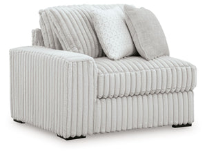 This left-arm facing corner chair is made with polyester upholstery. Pairs with other items in the series to make a sectional.