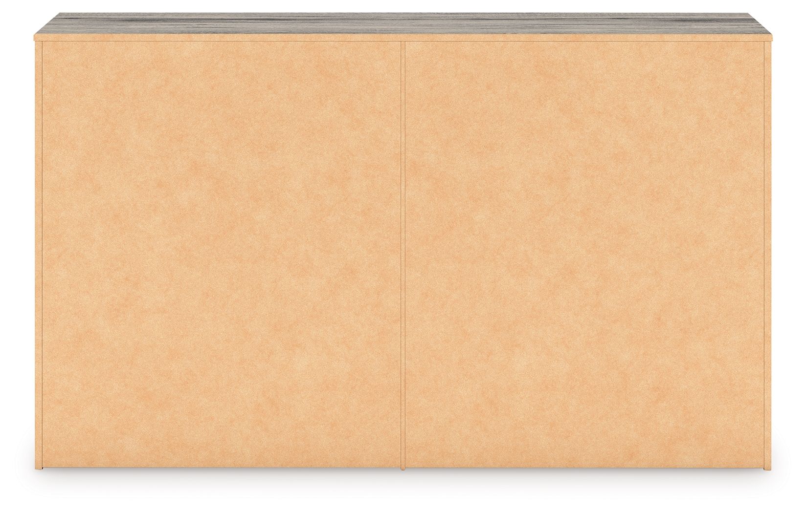 Casually cool style and lots of storage go hand in hand with this dresser. A weathered finish over replicated oak grain creates an easygoing vibe, setting the scene in your restful retreat. Clean lines and modern handles provide a fuss-free look. And the dresser's six roomy drawers give you plenty of space for stowing away clothes and more.