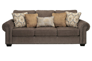 - ["Corner-blocked frame","Tight back cushions and reversible seat cushions","Cushions with ultra-supportive, pocketed coils","5 decorative pillows included","Pillows with soft polyfill","Nailhead trim","Exposed feet with faux wood finish"]