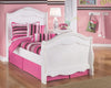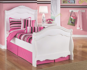 With the exquisite beauty of formal French style brought to life within a country motif, the "Exquisite" youth bedroom collection is sure to create a sense of magic and wonder to any child's bedroom. With a luminous replicated white paint finish flowing smoothly over the decorative embossing and beautifully turned detailing, this furniture is perfectly designed for any little girl's room. The satin nickel color hardware and stylish appliqués and rosettes adorn this furniture with a traditional beauty that radiates from the collection. Create the fairy tale bedroom for your child with the elegant design of the "Exquisite" youth bedroom collection.