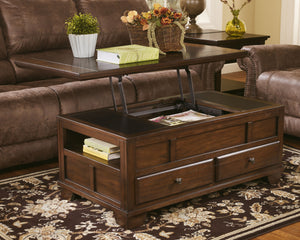 With its clean lines and ample storage space, this coffee table proves you dont have to sacrifice style for functionality. Subtle moulding adds flair, while tables finish blends well with a variety of color schemes. Hate clutter? Store books, throws, remotes and more in tables two drawers or two storage cubbies. Lift top reveals additional storage underneath.