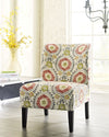 Fresh twist on style. Breathe new life into your space with this delightfully vibrant accent chair. Abstract medallion pattern charms with a touch of whimsy and ever-so-subtle Bohemian-chic flair.