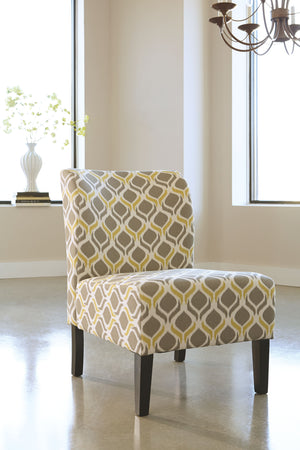 Add a contemporary touch of beauty to any seating arrangement with Honnally accent chairs. Your eyes will be drawn to the colorful patterns and guests will centainly find comfort. Chairs have tight seat construction with blocked corners. Durable chair frames andlinen-like fabrics make these chairs a perfect choice. Assembly required.