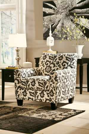 Elegant lines and an understated two-tone floral pattern flow beautifully together in this arm chair proving that you dont have to make a splash to make a statement. It adds just the right amount of flair to a sophisticated setting.