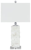 - Made of alabaster and acrylic with a rectangular hardback shade