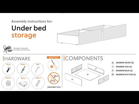 This twin/full double drawer storage is made with engineered wood (MDF/particleboard/plywood) and decorative laminate. Pairs with other items in the series to make a bed kit.