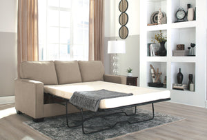 What a fresh awakening in minimalist design. Striking a highly linear pose with track arms and crisp boxed cushions, this full sleeper sofa is beautiful proof that less is more. Wrapped in a richly neutral microfiber upholstery, it includes an upgraded memory foam mattress to make your overnight guests that much more comfortable.